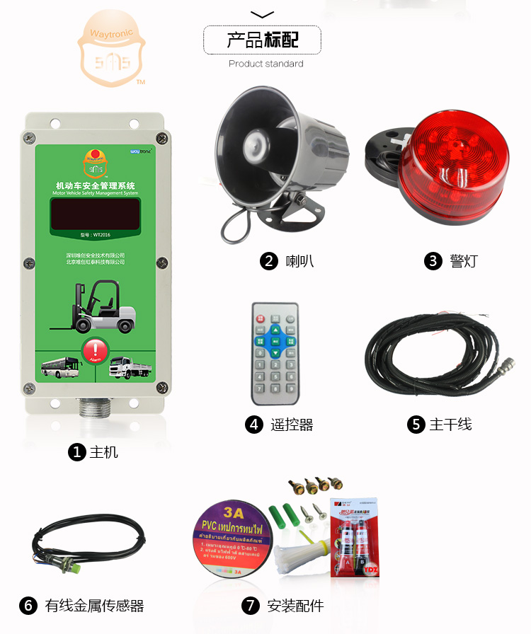机动车安全管理系统(Motor Vehicle Safety Management System),简称VSMS,是基于解决厂内叉车安全隐患与企业叉车安全管理的一套系统。(为方便国外市场使用,我司该系列产品有专用国外市场的英文版本,其他语言也可以定制,部分区域有认证可提供) 此系统主要用于厂区叉车管理,目前有叉车超速报警器,叉车限速报警器,叉车安全管理系统三款类型。 叉车超速报警器,顾名思义,就是当叉车超过标准的速度后,报警提示司机,注意减速;叉车限速报警器,指可以对叉车进行直接的限速,设置速度值,如20Km/H,那么速度就会被控制在这个范围以内,再也开不上去了;叉车安全管理系统,这款主要用于企业对叉车和司机的管理、监控,可以搭配管理后台系统使用,叉车司机刷卡使用车辆,企业管理者可以实时查到每辆车的行使记录,超速记录,超速时间,超速司机是哪位,当叉车发生故障损坏时,也可以更好的追究到相关人员,进行考勤。在产品安装技术方面,我司是全国唯一一家无线安装技术的研发、生产厂家,无线安装方式(本文为有线安装产品介绍,另有无线安装叉车限速器),大大简化了产品的安装流程,不损坏车辆机身,保障车辆的使用寿命。 产品详细介绍视频请点击→“相关资讯”